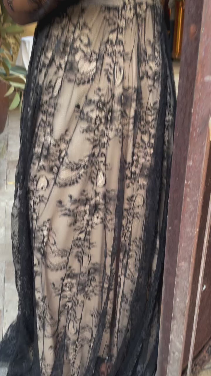 שמלה קלאסית ונשית בגזרת מקסי, עם בד לייקרה רך ותחרה עדינה שמוסיפה טאץ' יוקרתי.
